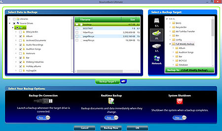 Bounceback has a fairly easy user interface. Click what you’d like to do with easy-to-understand buttons. (For instance, “Real-time Backup. Yes/No.”) And when you select to create a backup job, a file tree appears in a left panel to check off what you want backed up – down to specific files -- while the destination options show up in a right panel. When you’re done, you give the job a unique name and simply select when you want to run it. (I set up backup jobs for a weekly external drive, and one to backup onto a smaller-capacity Flash drive.)