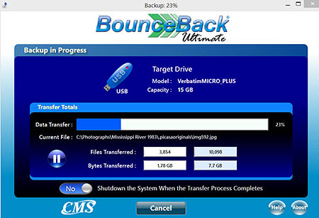 Which brings us to CMS Bounceback Ultimate. To be clear, Bounceback does more than just back up native files and folders. It can handle creating full-system backups (including programs and your operating system) that will be bootable in case of a crash. You can also use Bouncebook for Instant PC Recovery, to run your computer externally, if your hard disk fails. And you can set the program for “real-time backup” to automatically back up files as soon as they’ve been changed. (This is something that Windows can do, as well, now, if you set it for File History.)