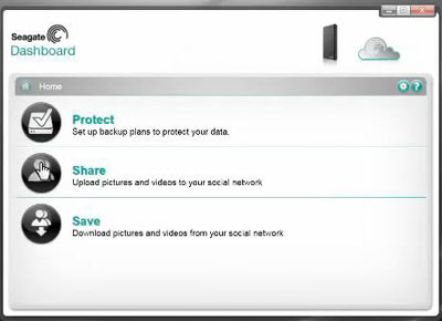 Where Seagate moves into a different area is with the inclusion of its Seagate Dashboard software, which you install on your hard drive. Dashboard offers three services, what Seagate calls “Protect, Save and Share.”